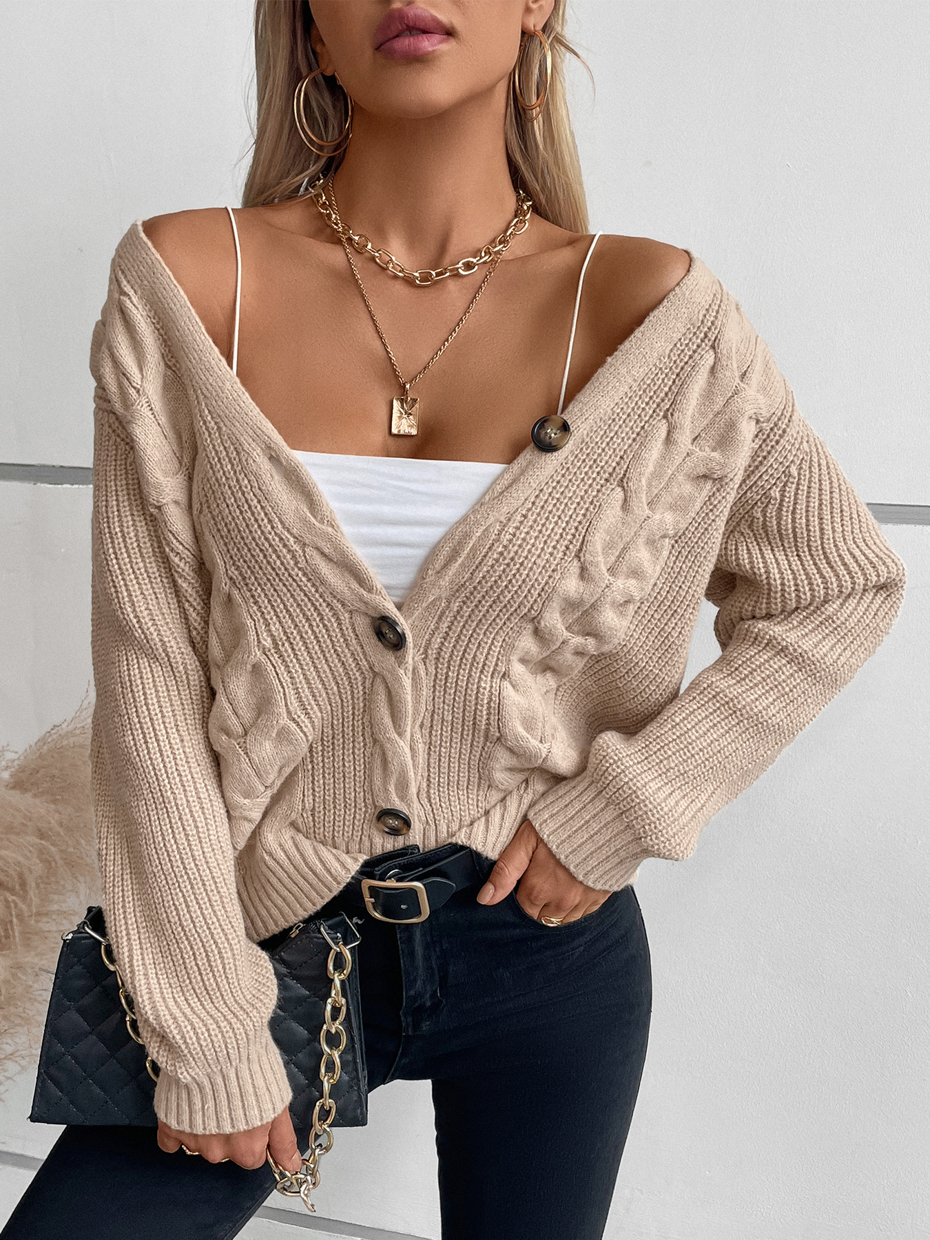 Avec ses torsades élégantes et son design uni, ce cardigan revisite l’esprit vintage tout en s’adaptant aux tendances actuelles.